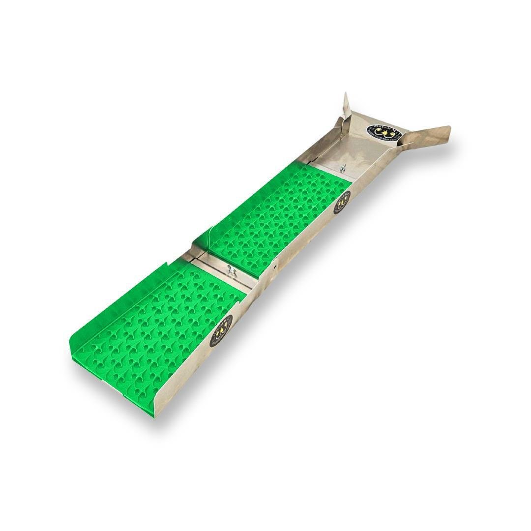 6" Folding Sluice Bottom: Adds a 16" extension with a Mini Dredge Mat to ensure no fine gold escapes your cleanup run.