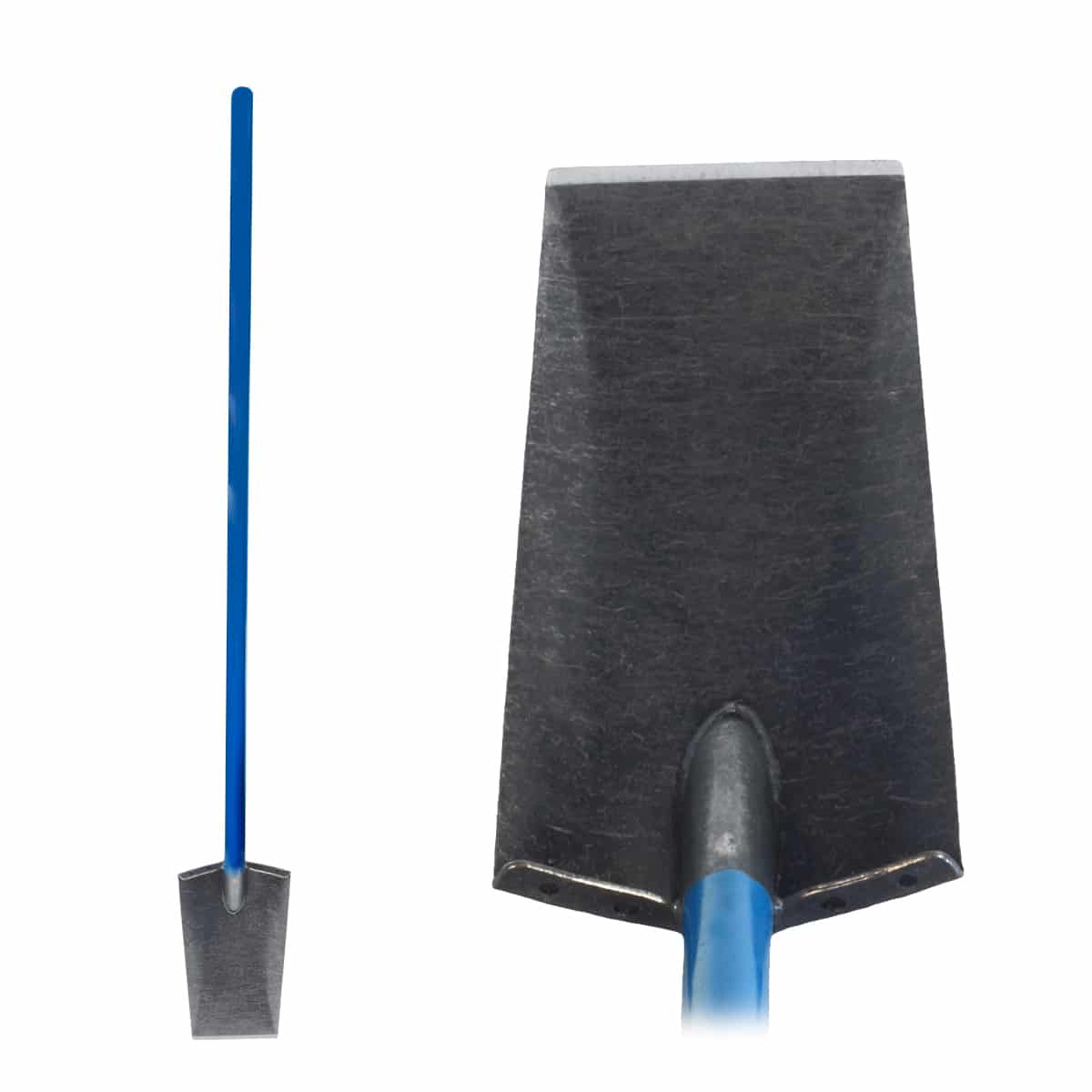 Super strong, rust resistant. Long tapered cutting edge resists dents and nicks from hard digging conditions.