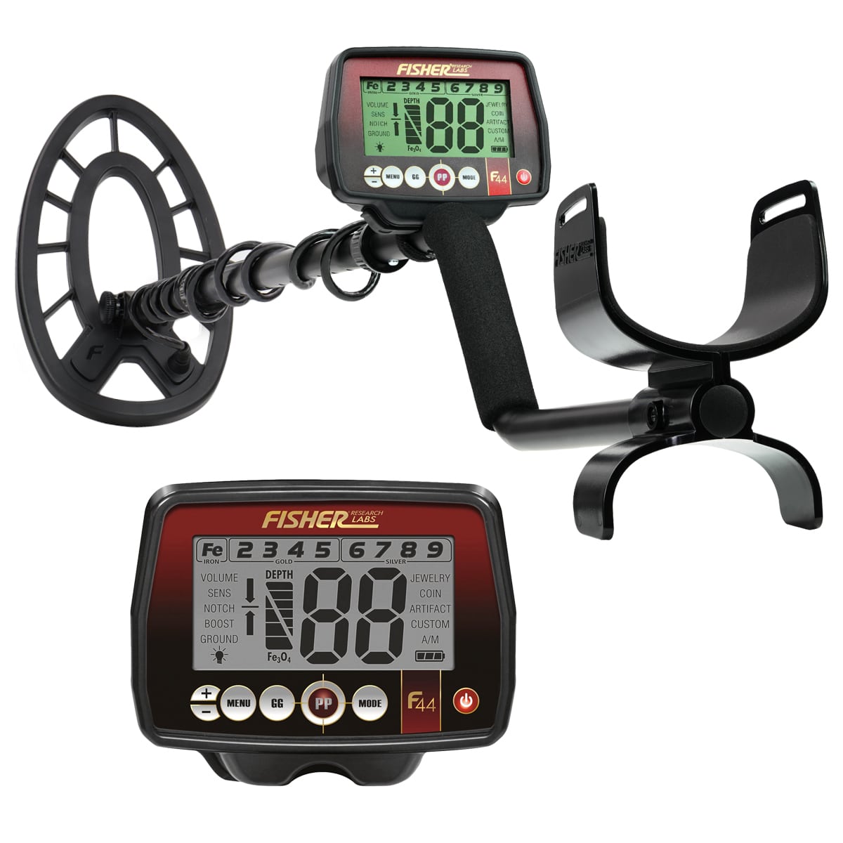 Fisher F44 Metal Detector with 11″ Concentric Elliptical Waterproof Search Coil, Five-Year Warranty.