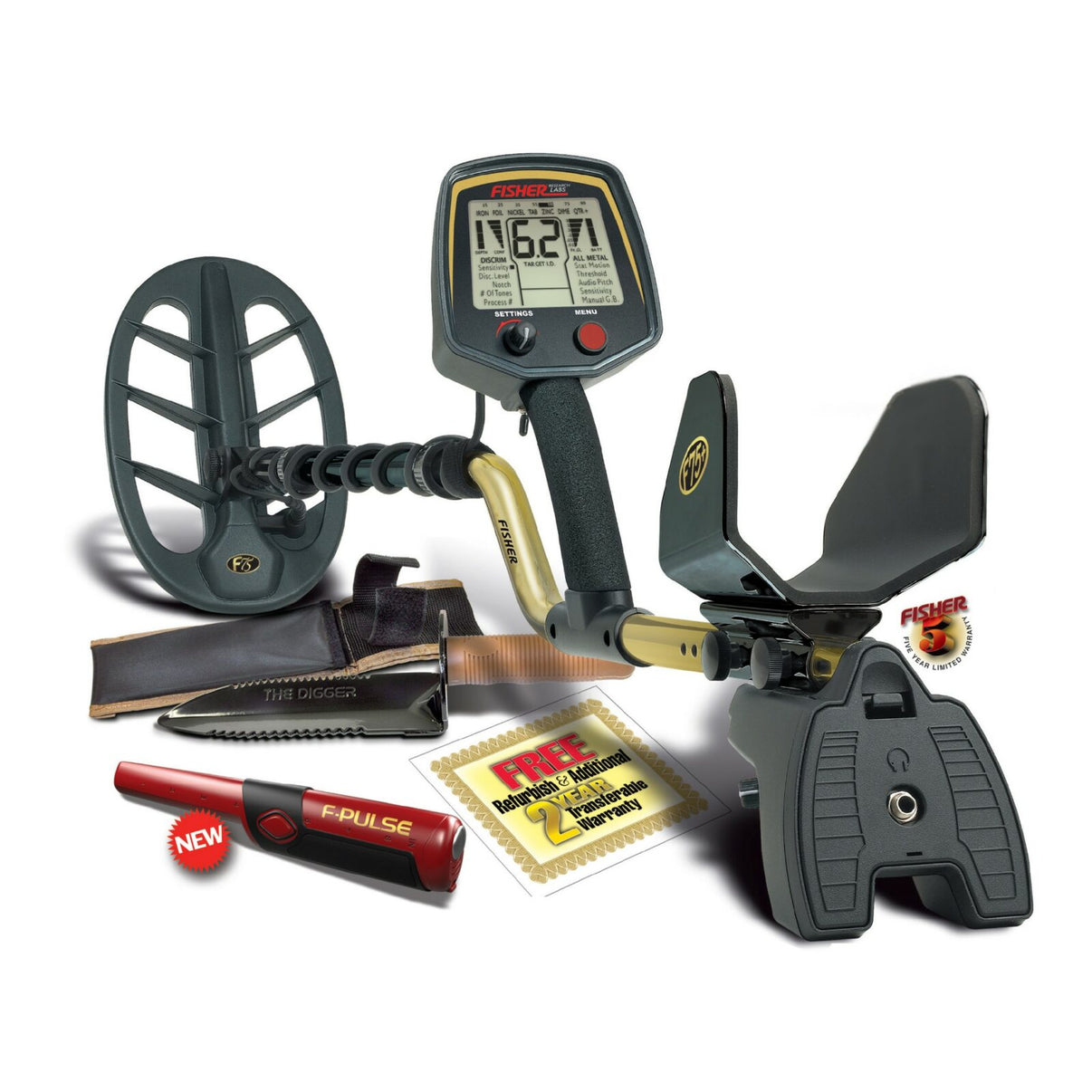 Fisher F75 Metal Detector with F-Pulse Pinpointer, The Digger Digging Tool, Two-Year Transferable Warranty Coupon, 11″ DD Waterproof Search Coil, Batteries, and a Five-Year Warranty.