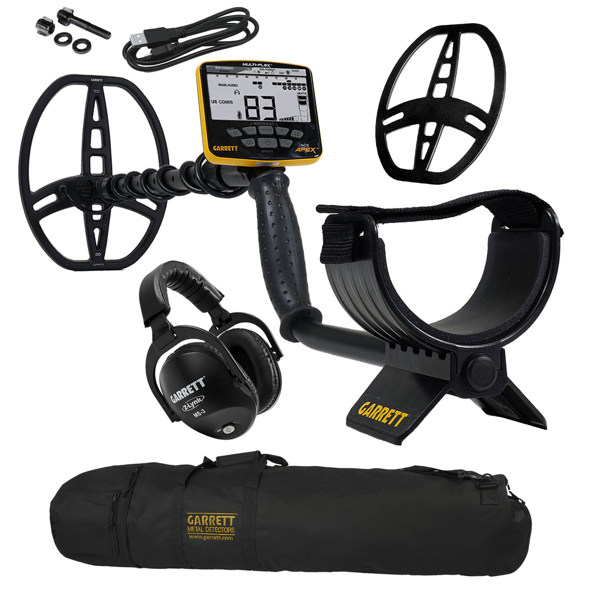 This is the new leader in affordable metal detector technology, the Garrett ACE APEX Metal Detector. This upgraded package comes with the Z-Lynk Wireless Headphones and a Coil Cover for the Raider Multi-Flex Search Coil.