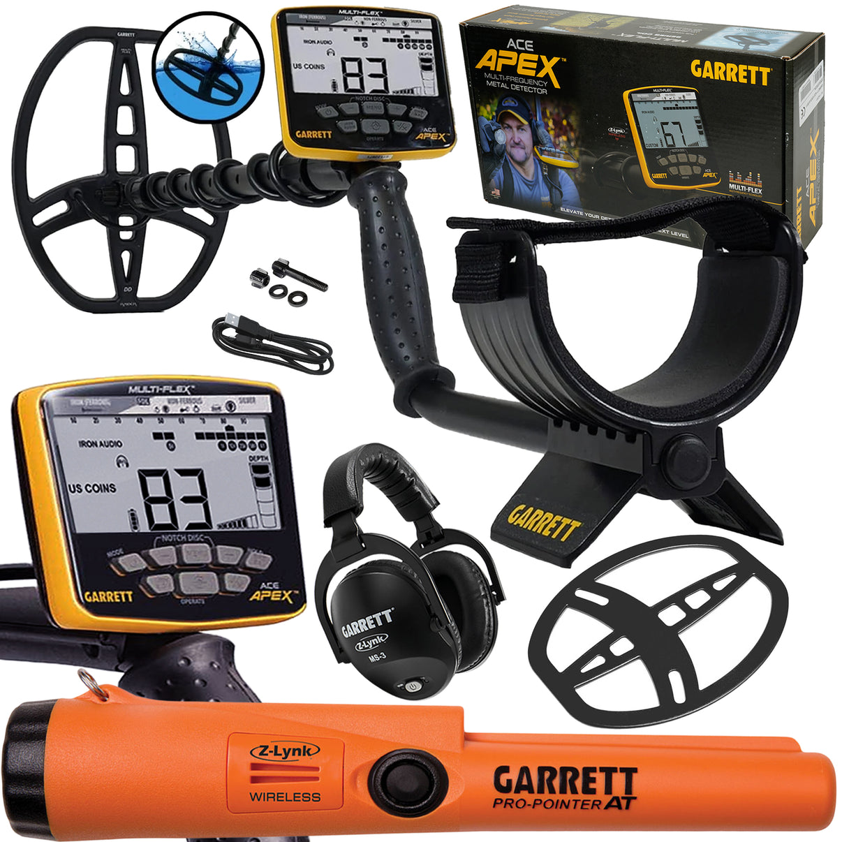 This is the new leader in affordable metal detector technology, the Garrett ACE APEX Metal Detector. This upgraded package comes with the Z-Lynk Wireless Headphones and a Coil Cover for the Raider Multi-Flex Search Coil.
