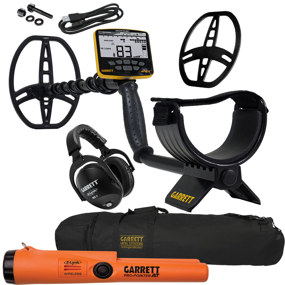 This is the new leader in affordable metal detector technology, the Garrett ACE APEX Metal Detector. This upgraded package comes with the Z-Lynk Wireless Headphones and a Coil Cover for the Raider Multi-Flex Search Coil.