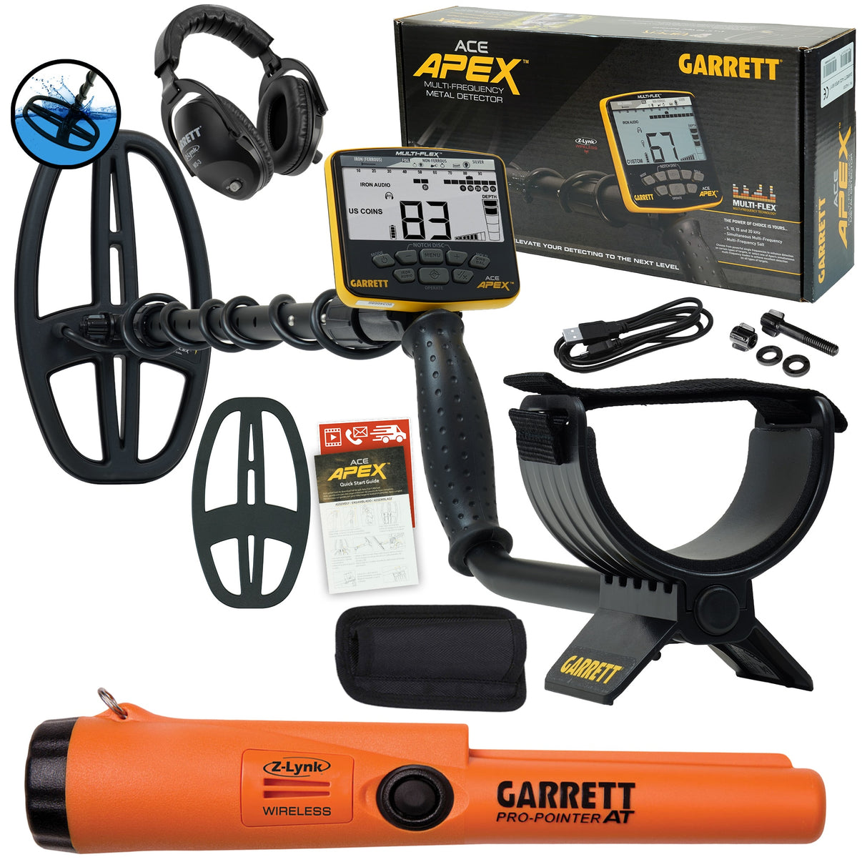 This is the new leader in affordable metal detector technology, the Garrett ACE APEX Multi Frequency Metal Detector. This upgraded package comes with the Z-Lynk Wireless Headphones and a Coil Cover for the Viper Multi-Flex Search Coil.