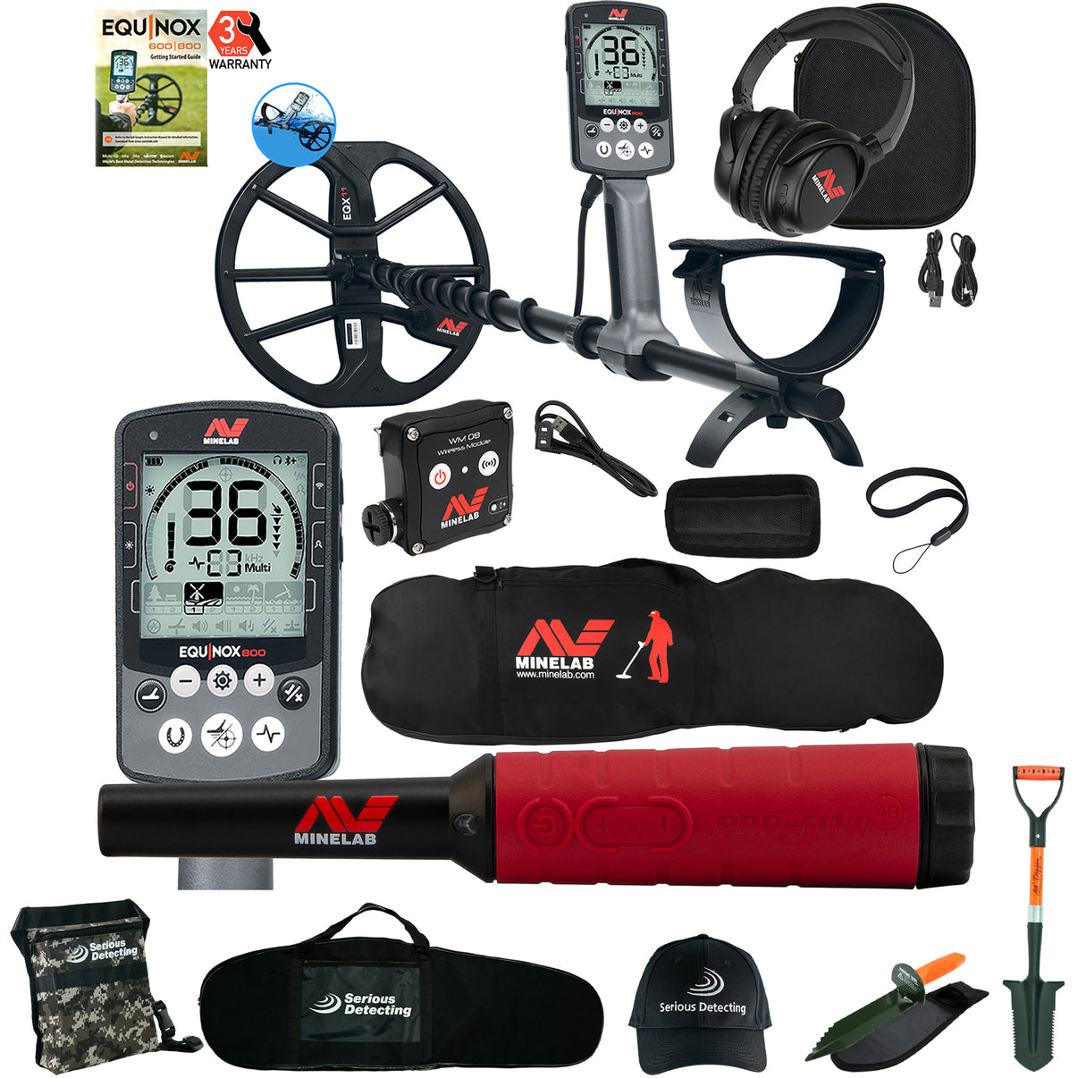 - Bluetooth Headphones and WM/08 Wireless Module with Minelab EQUINOX 800 Multi-IQ Metal Detector