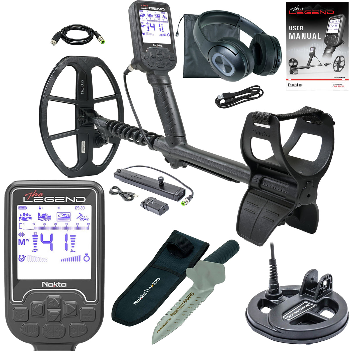 Nokta The Legend SMF Metal Detector Pro Pack w/ Wireless Headphones, LG30 12" x 9" coil and updated with a fully carbon fiber shaft and a new sleek armrest.