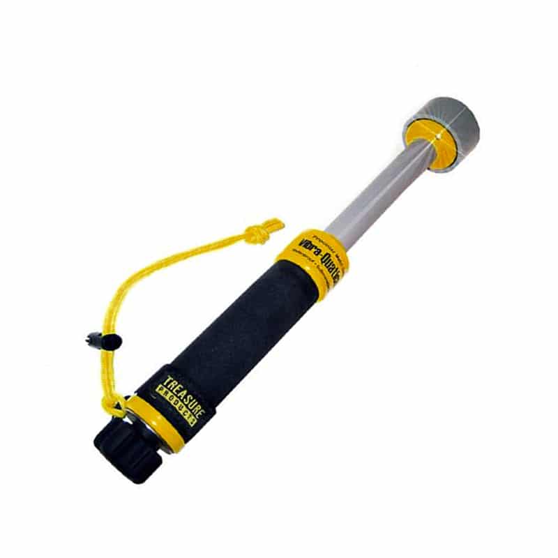 The Vibra-Quatic™ has a large 2 inch detection tip which means deeper detection depths, and more sensitivity to large objects.No push button switches. Instead the Vibra-Quatic™ uses our unique tilt on & off design, and the self-calibrating microprocessor-controlled circuitry requires no adjustments of any kind.The unique sealed design is waterproof to a depth of 100 feet (30m).The Vibra-Quatic™ incorporates Pulse Induction (PI) technology. This allows hunting in any environment including grass, mud, dirt, sand, black sand, and fresh or salt water.Also includes an adjustable, and removable, wrist strap for added security.