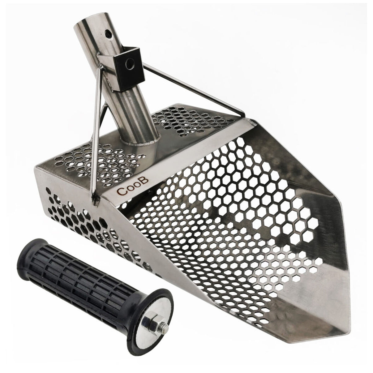 CooB 11.5" x 7" Stainless Steel Metal Detector Sand Scoop - Your Gateway to Uncover Hidden Treasures! Discover ancient coins and exquisite jewelry with ease. Designed with precision, this scoop features hexagon-shaped holes (10mm and 7mm) for efficient sifting, ensuring no valuable artifact escapes your grasp.