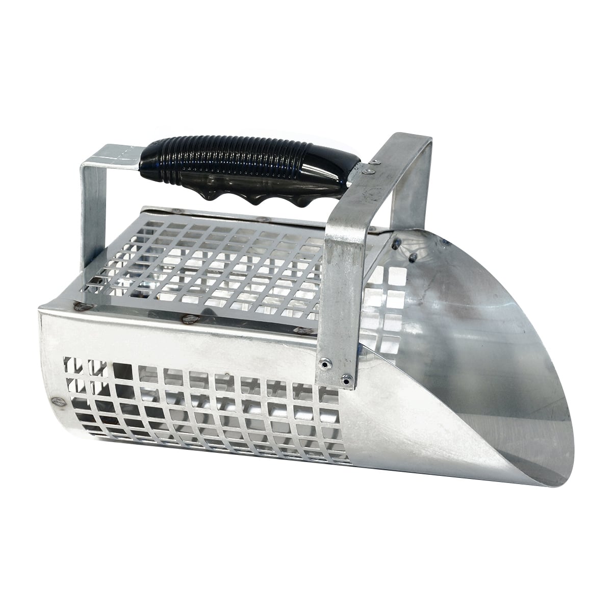 This sand scoop allows sediment to be easily sifted. It has a rugged stainless steel construction and is comfortable for hours of use.
