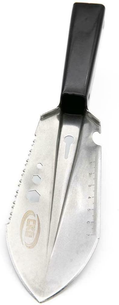 Our CKG Metal Detector Stainless Steel Digging Shovel Tool has a convenient belt holder. This multi-purpose gadget is ideal for gardening and outdoor activities, featuring a lightweight, compact design. The shovel is specially engineered for digging and prying in soft soil.