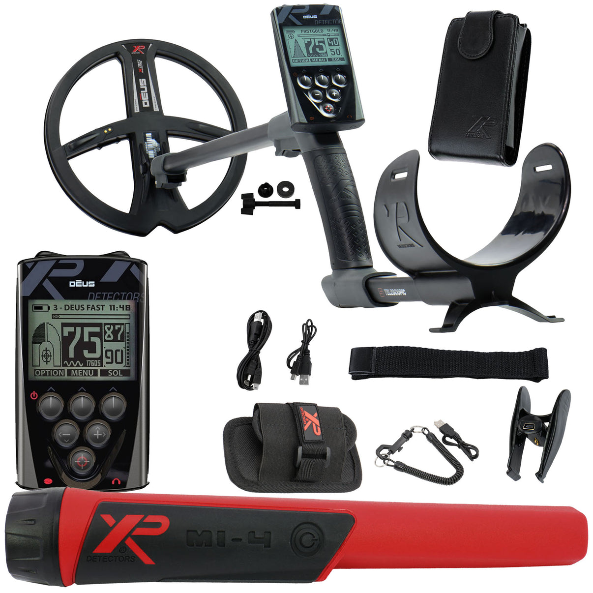 XP Deus Metal Detector with 11″ X35 DD Waterproof Wireless Search Coil, Coil Cover, Wireless Remote Control Display Screen, Hip mount case for Remote Control, and a 5 Year Parts and Labor Warranty.