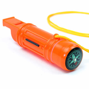 5-in-1 Orange Survival Whistle with Lanyard