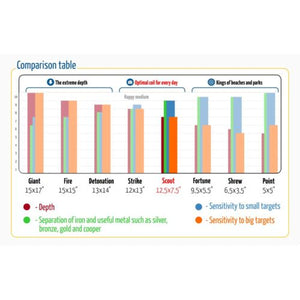 This coil is unusually light for its size, which makes it easy to search for a whole day. The coil is superior to a standard coil in depth by 5%-30% (depending on the model of the metal detector) and in ground coverage of between 25%-50% (depending on the model of the metal detector).
