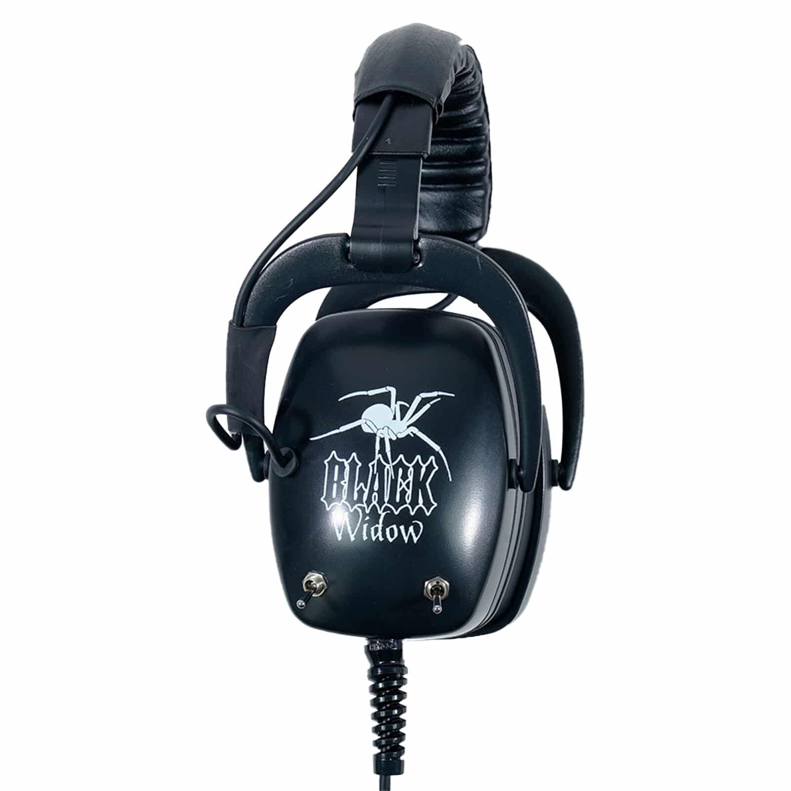 Black Widow headphones were designed to accommodate the professional detectorist with special hearing requirements and for environments with high ambient noise levels. Large extended muffs are designed to block ambient noise to a higher degree for huntsites in proximity to urban traffic and surf roar.