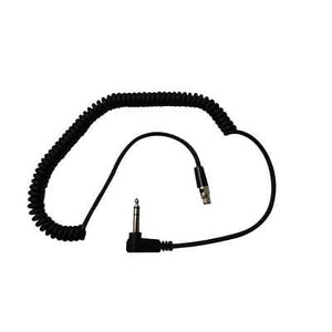 This coiled cable features a 3 pin female push in connector on one and, and a reinforced molded right angle 1.4" (6.3mm) stereo connector on the other.