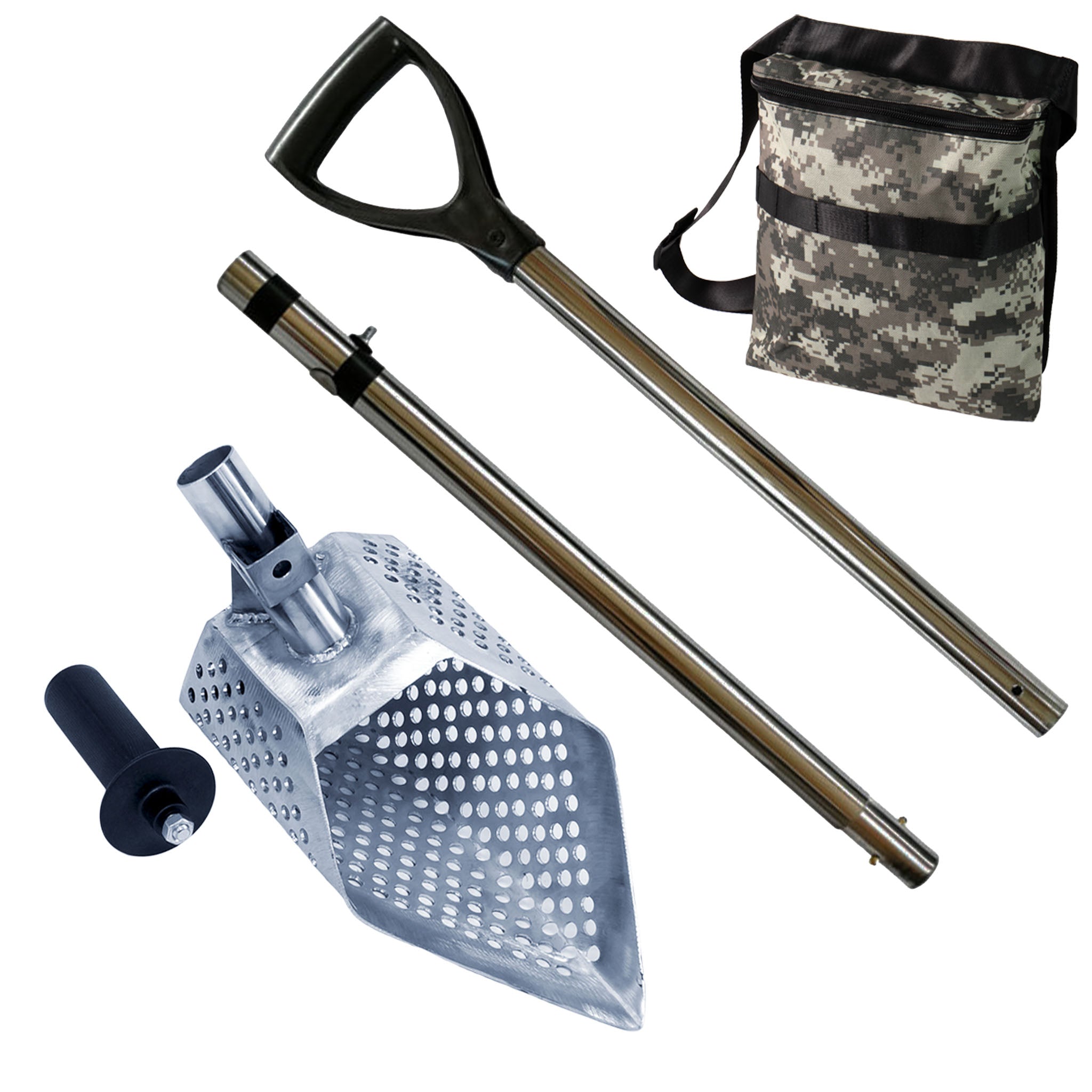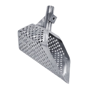 Discover treasures with the Dune Scoops Anaconda 11.5 x 6" Stainless Metal Detector Sand Scoop. Crafted with precision and durability, it features 8mm round-shaped holes for capturing ancient coins and fine jewelry. With two mounting options and a strengthened nose for efficient digging, this stainless steel scoop excels in any ground condition.