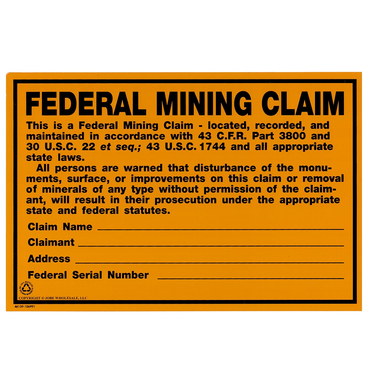 Federal Mining Claim Sign To Protect Your Mining Claims