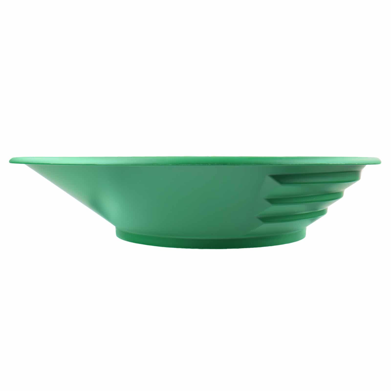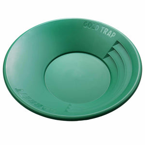 The Garrett 14″ Prospector Gold Pan features a 90° riffled design that ensures safe, sure, rapid gold recovery in wet or dry conditions. This gold pan is lightweight, green for enhanced gold nugget visibility, and virtually indestructible.