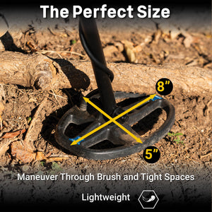 The 5" x 8" DD Vortex Ripper coil is the perfect size for working in tight spaces, around rocks, and in heavily trash-laden or iron-infested areas. Its compact footprint allows you to get closer to obstacles while maintaining excellent maneuverability and precision.