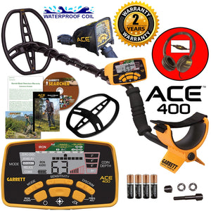 Garrett ACE 400 Metal Detector with 8.5 x 11 DD Waterproof Coil & 3 Accessories
