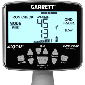 - Iron Check: This feature helps you audibly identify iron targets with the Axiom when using a DD search coil.