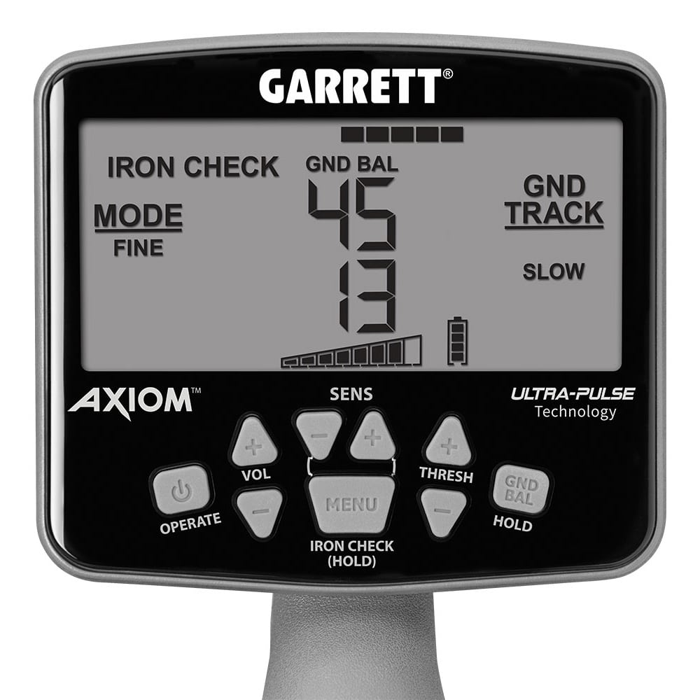 Garrett Axiom Metal Detector with 13"x11" Mono Coil, 11"x7" DD Coil MS-2 Headphones, and Pinpointer