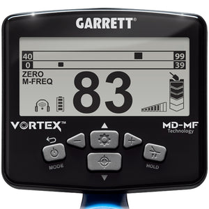 The Vortex VX7 includes more frequency and mode options than VX5, including the powerful Multi-Frequency Salt mode for wet sand and saltwater surf use. Two-tiered MD-MF Target ID display (with separate ferrous and non-ferrous target scales). Additional audio tones plus adjustable Recovery Speed.