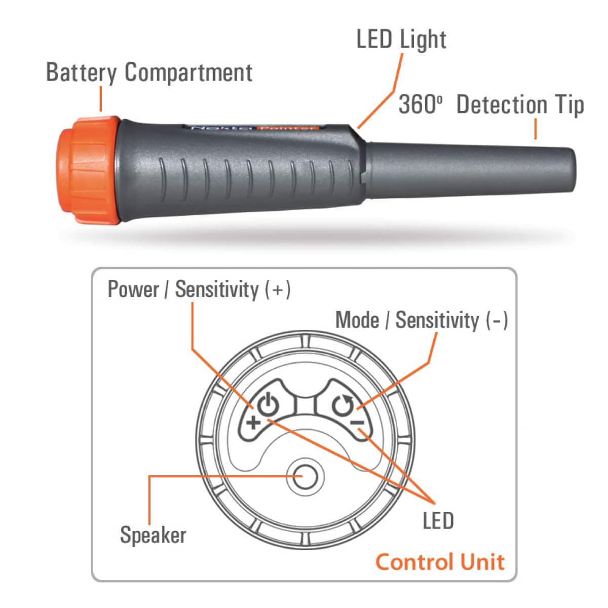 The Nokta Pointer has all the features you need to quickly locate and find your targets plus some unique and exclusive items, not one, but two removable, replaceable slip-on covers that prevent wear of the Pointer search coil tip. One cover also has a scraping blade. Both add longer life to your pointer.