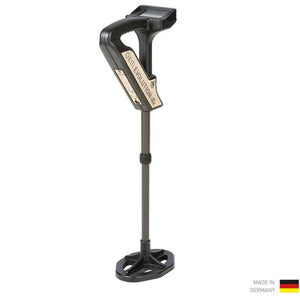 Evolution NTX with telescopic search coil: The length of the metal detector Evolution NTX can be adjusted to the individual body height of its user.
