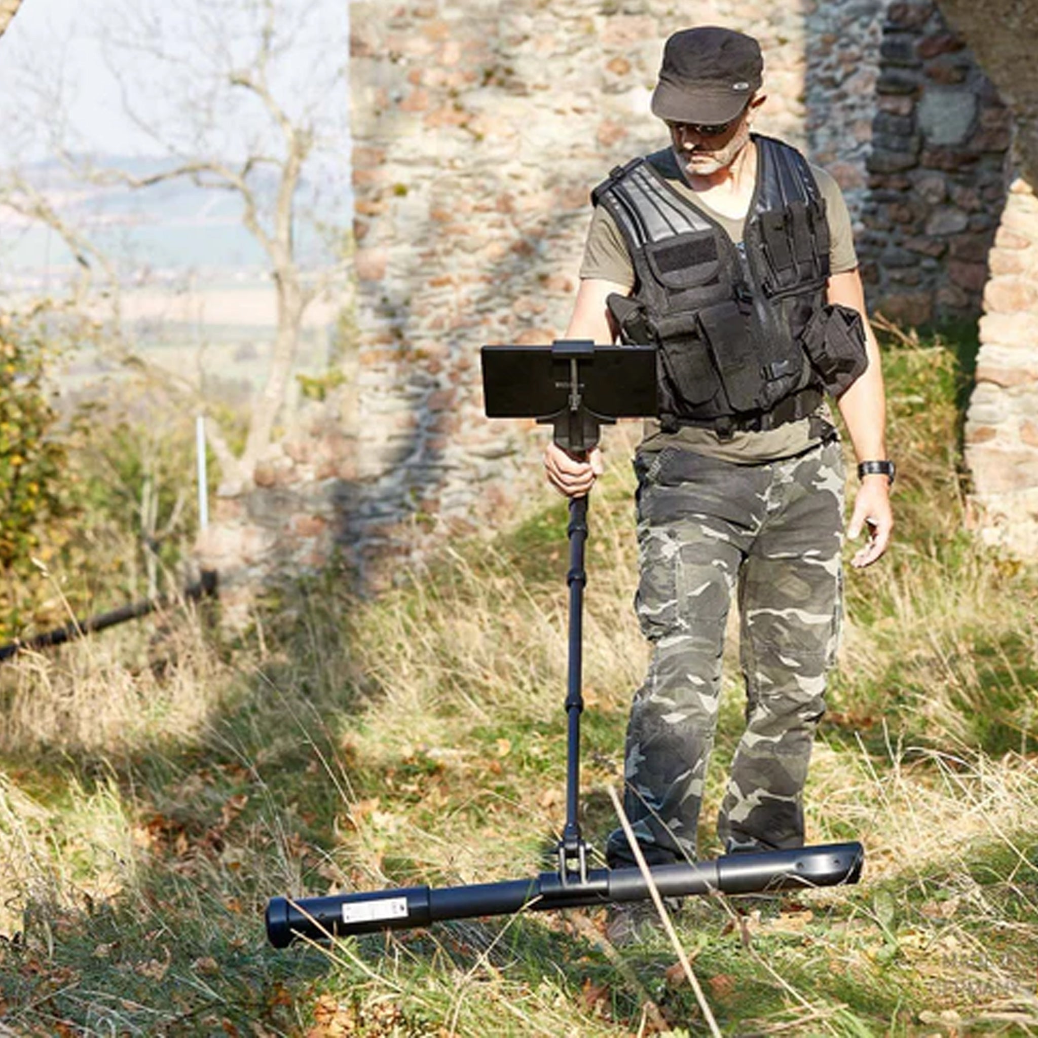3D Ground Scan with horizontal probe is only available with Fusion Professional Plus When using the detector in horizontal orientation, the probe is attached to the Telescopic Rod and the tablet is mounted above the handle. In this way, the detectorist is able to control the detector via software on the tablet very easily. Moreover, the horizontal orientation of the probe allows to record more values at once thanks to the integrated Multi-Sensor technology