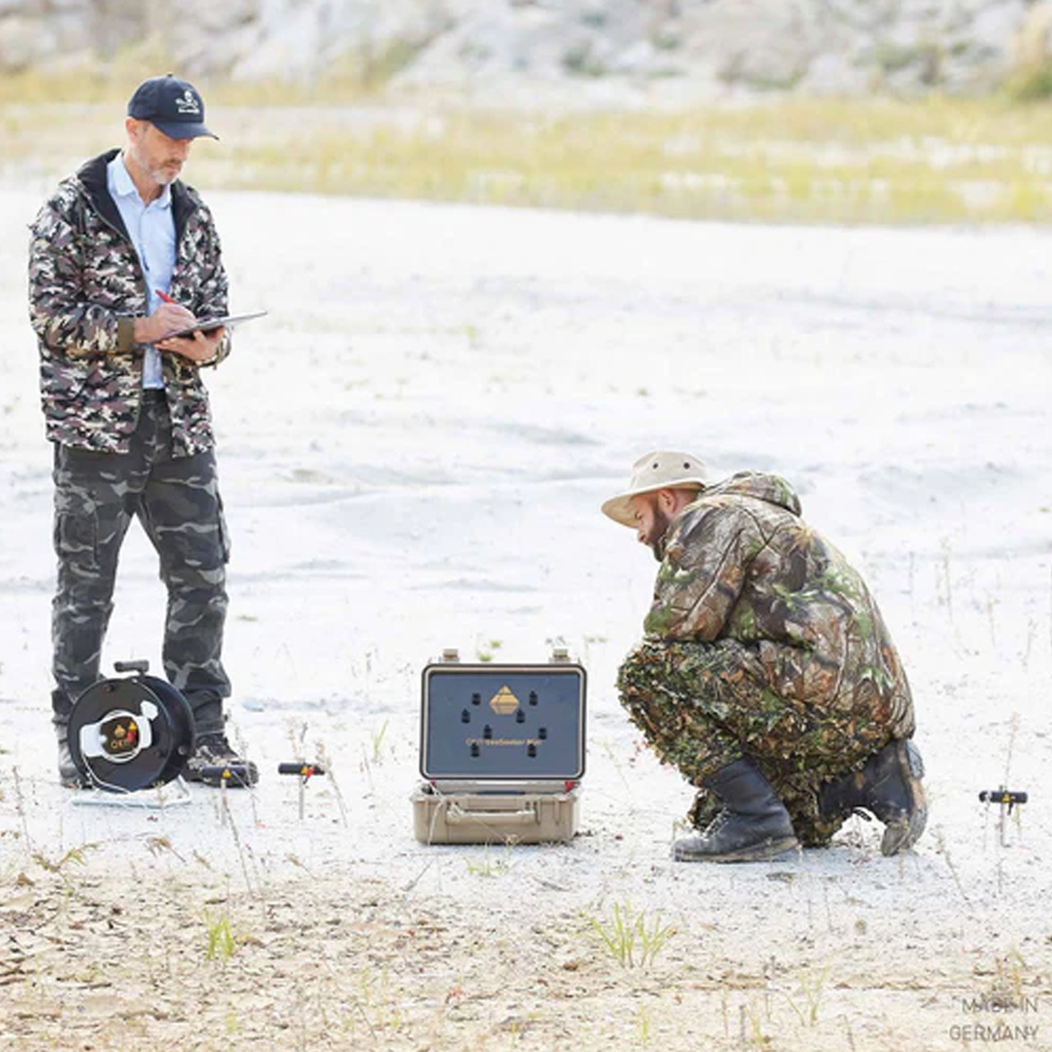 GeoSeeker Mini utilizes a geoelectrical measurement procedure based on Schlumberger. The water detector can also be used to detect underground cavities and determine soil resistivity. Based on the apparent resistivity of the ground the detector can detect underground water resources like fresh water, drinking water, water-bearing gravel, and groundwater level.