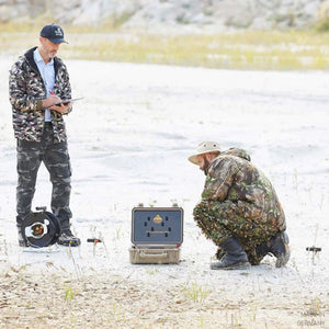 - The water detector GeoSeeker Mini is operated via touchscreen. Select the measurement depth as well as the amount of scanning points and simply follow the graphical instructions.