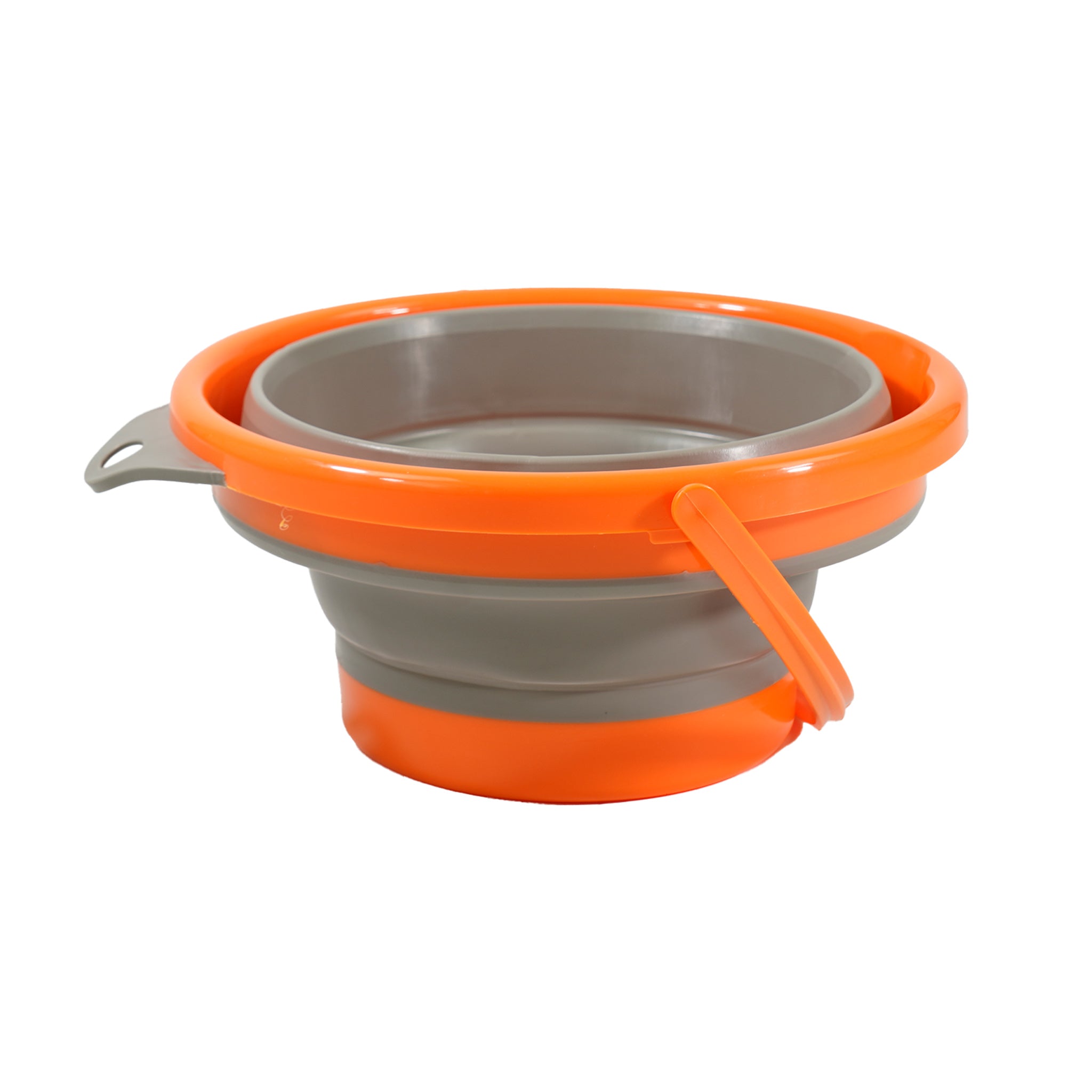 BPA-Free Silicone: Crafted from BPA-free silicone, this multipurpose bucket ensures safety by containing no harmful chemicals. It's suitable for use with drinking water, around children, and with pets. This non-toxic and odorless bucket features a robust plastic handle for easy carrying.