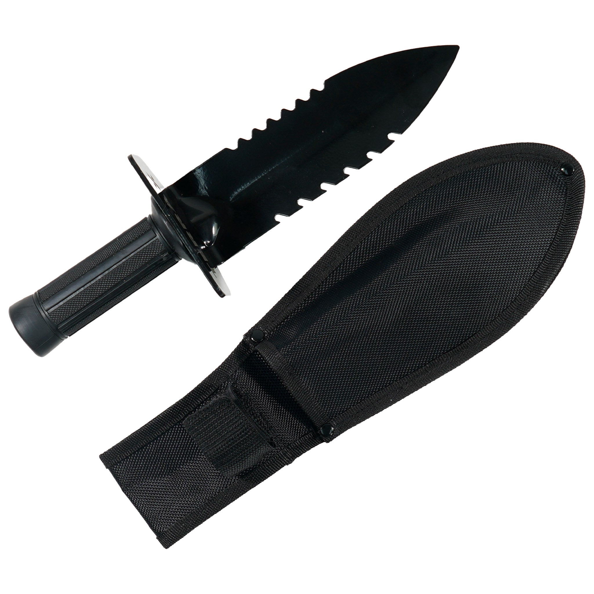 Elevate your outdoor pursuits with the TerraX Heavy Duty Hand Digger - Shovel with Serrated Edges, an essential tool for professional landscaping, gardening, relic hunting, metal detecting, and gold prospecting. Engineered with precision, this digging knife features a sleek black color and durable steel construction, ensuring reliability in various environments. Its serrated edges efficiently tackle a range of tasks, while the rubber handle provides long-lasting comfort. Weighing just 14 ounces, it offers a lightweight yet durable design. With the belted sheath included, you can conveniently carry and access your hand digger during outdoor adventures. Unleash its versatility and enjoy seamless outdoor exploration