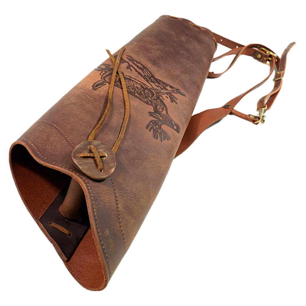 Embrace the beauty of nature with our stunning quiver featuring a captivating whitetail deer design embossed on the back. Crafted from the finest water buffalo leather, this quiver exudes elegance and durability, making it a perfect accessory for any archer.